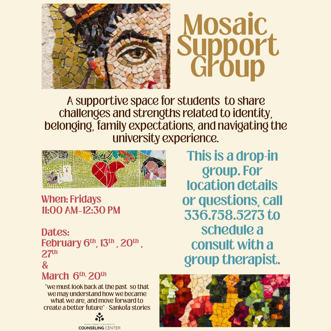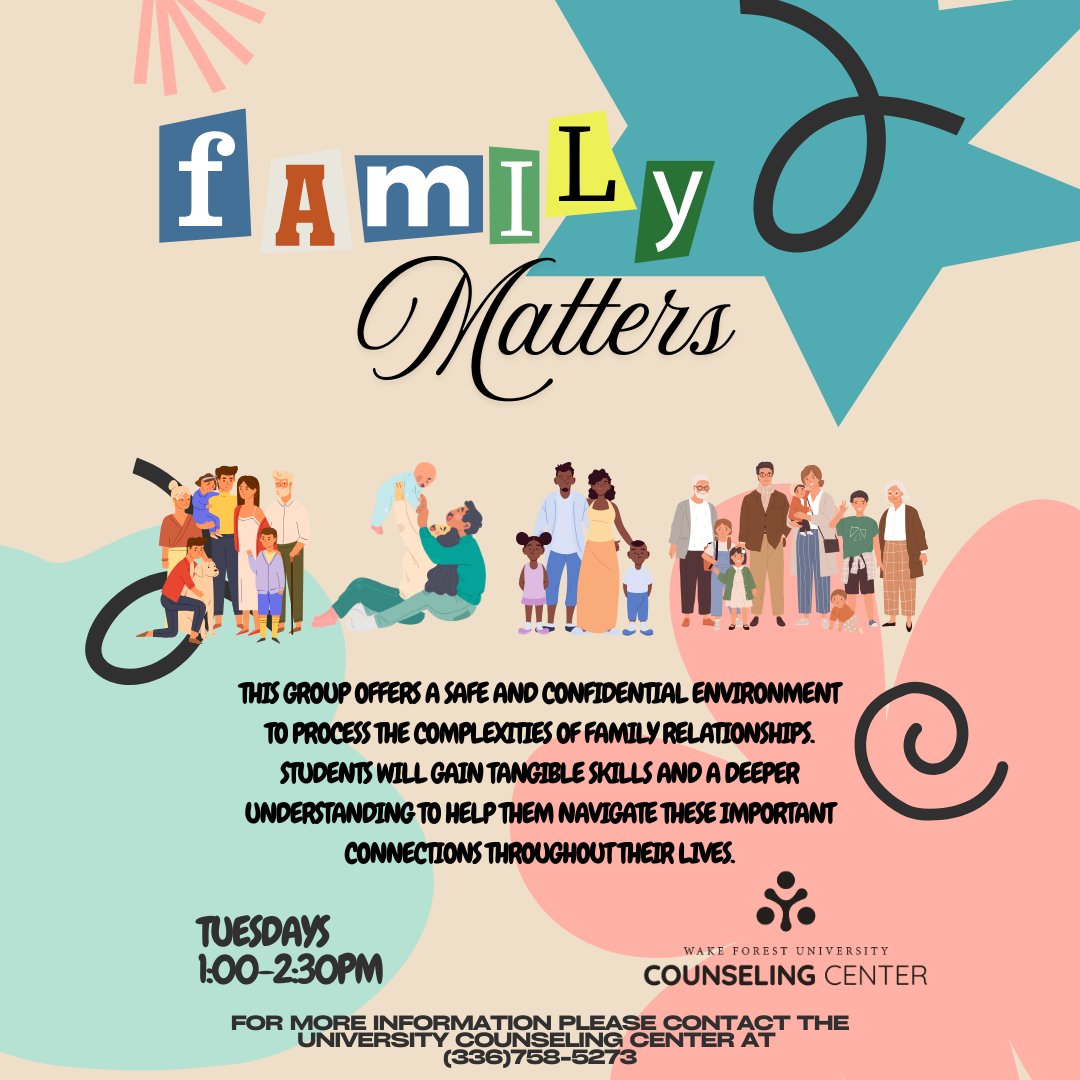 This semi-structured group offers a safe and confidential environment to process the complexities of family relationships. Students will gain tangible skills and a deeper understanding to help them navigate these important connections throughout their lives.